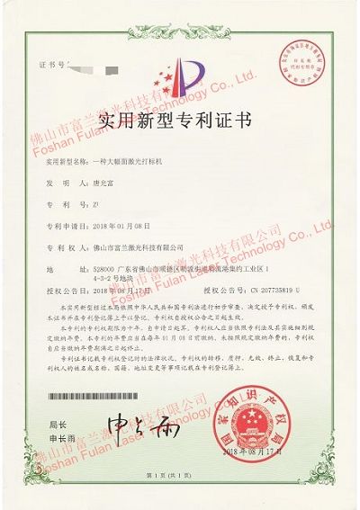 一種大幅面激光打標(biāo)機(jī) 專利證書(shū)