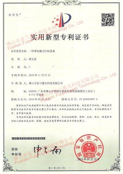 一種滑軌激光打標(biāo)設(shè)備 專利證書