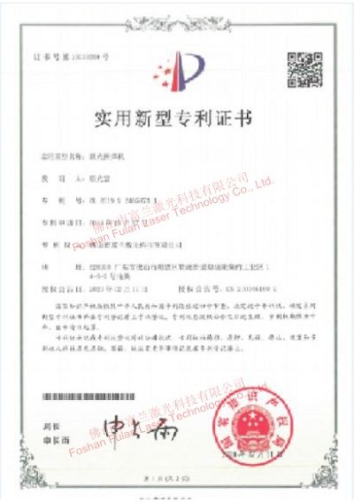 激光拼焊機(jī) 專(zhuān)利證書(shū)